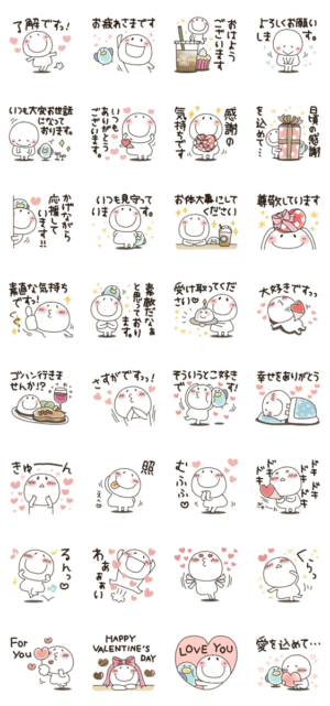 まるぴシリーズ第37弾です。カップルや夫婦、彼氏などラブラブをさりげなくスタンプで!目上の人にも控えめに気持ちを伝えよう!