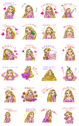 大人気のプリンセス、ラプンツェルのしゃべって動くスタンプが初登場!キュートでハイテンションなボイス付きスタンプでトークを盛り上げよう♪