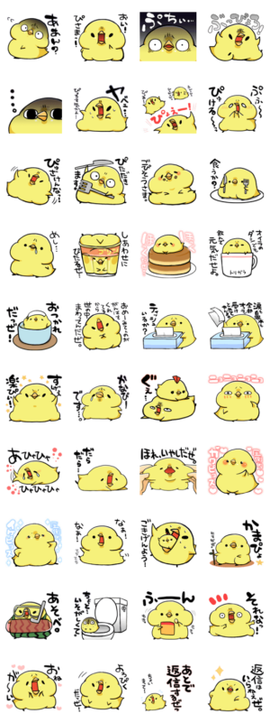 漫画「未知なるヒヨコ」のキャラクター『ぴょろすけ』スタンプ第二弾です。可愛いけど、ちょっと凄みのあるシュールなヒヨコスタンプです。あすか より発売