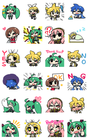 初音ミクとリン・レン、ルカ、MEIKO、KAITOが動く!イラストレーター「CHAN×CO」書きおろしの動くスタンプ登場!クリプトン・フューチャー・メディア(株) より発売