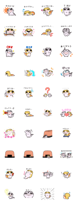 レオパードゲッコー(ヒョウモントカゲモドキ)をデフォルメしたイラストのスタンプです。なつもどき より発売
