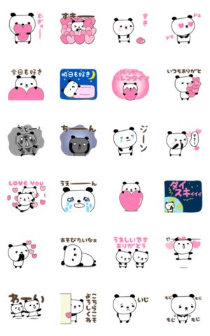 大人かわいいパンダのハートのアニメーションスタンプ。バレンタインデーや、気持ちを伝える時に使う大人可愛いぱんだ。バレンタインや好きな人と会話や挨拶で使えるPandaanalogue designs より発売