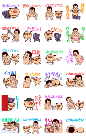 二大パンツキャラの共演!? よしもと芸人・とにかく明るい安村とパンパカパンツのコラボスタンプが登場。コブタキャラのパンパカくんの声は南條愛乃。
