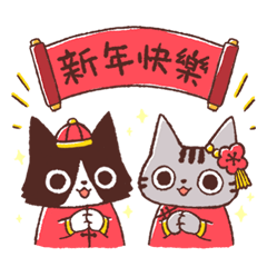 可愛い猫 "以太 & みみ"の春節年賀スタンプです、ぜひ使ってみて下さい!kappacha より発売