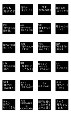 翔平ちゃん専用のタイプライターでトークを楽しんでください。恋の予感。笑いや涙ありの次回予告。