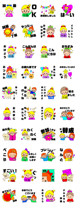 加藤スタンプ【カラフルポップ挨拶、敬語】 スタンプ画像一覧