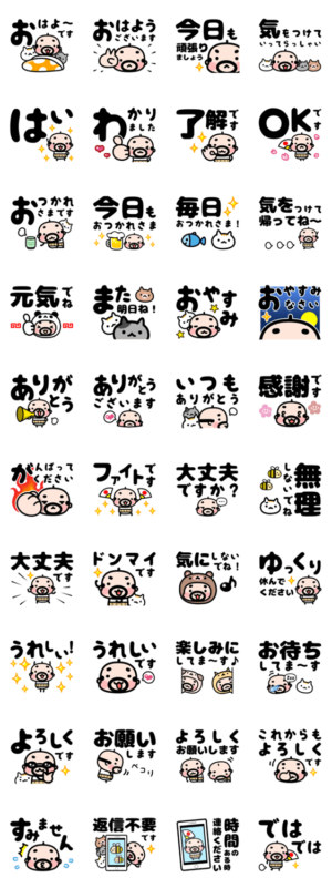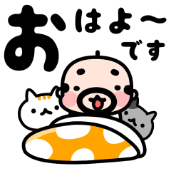 ミニおやじが見やすいでか文字と敬語・丁寧語であなたの気持ちを伝えるスタンプ。かわいい猫たちも一緒です。