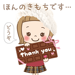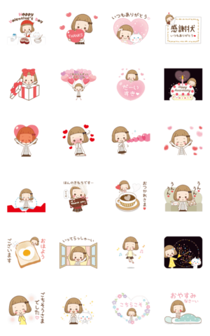 前髪短めな女の子の動く♪スタンプ第16弾は「大切な人に、気持ちを伝えるスタンプ」です。 バレンタインデーに使えるスタンプもあり!恋人、友達、同僚、家族で使ってね♪