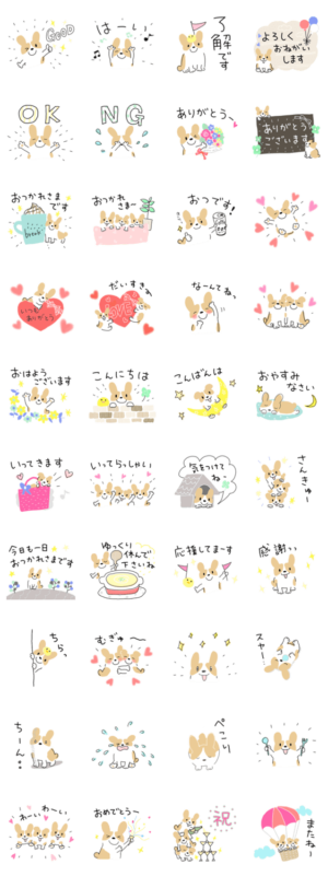 普段よりハート多めのほんわか犬のスタンプです。日常でよく使う敬語も入っています。犬好きの方にもおすすめ。 コーギー/子犬/敬語/毎日/挨拶/バレンタイン/受験/祝