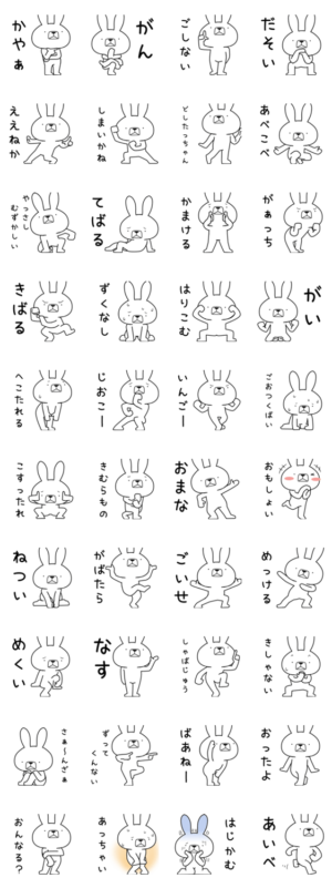 いろんな方言をつかううさぎのスタンプ糸魚川弁編2(糸魚川弁ですが、新潟・北陸地方・東北地方、そうでない方も使えるかも。また違う県verに似た方言が見つかるかも)