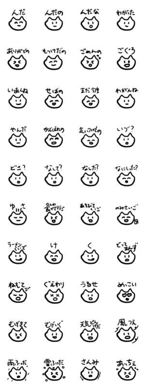 庄内弁を話すかわいい猫のスタンプです。山形、秋田、新潟あたりも使えるかも。黒い背景でも使えます。Kome より発売