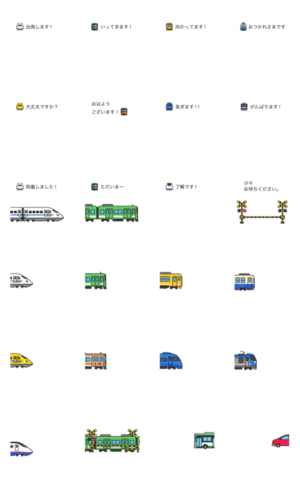 鉄道の動くスタンプです。普通のトークと思いきや、吹き出しの下を電車が通過します。nakata bench より発売