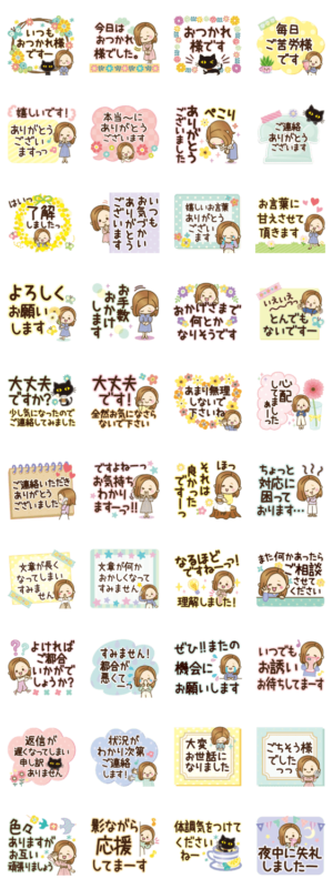大人女子の日常シリーズより、相手により伝わる気づかいスタンプが登場。長文多めで敬語/丁寧語なので日常以外でもビジネスシーンにもぜひ♪明るく穏やかな毎日に…♪