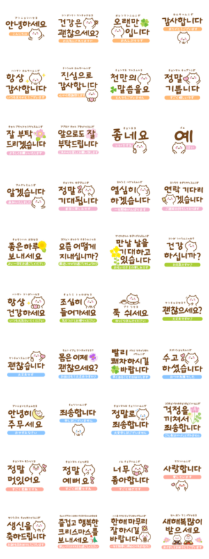 目上の人や上司、恋人のご両親に使っても失礼の無い丁寧な韓国語のスタンプです。勿論お友達との会話にも幅広い相手に使えます。 ハングル/韓国/敬語/お正月/クリスマスMay6 より発売