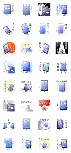 電子機器シリーズ、タブレットさんです。 IT関連の方、パソコン、デバイス好きの方におすすめです。 オフィスの仲間内でも使いやすいスタンプです。