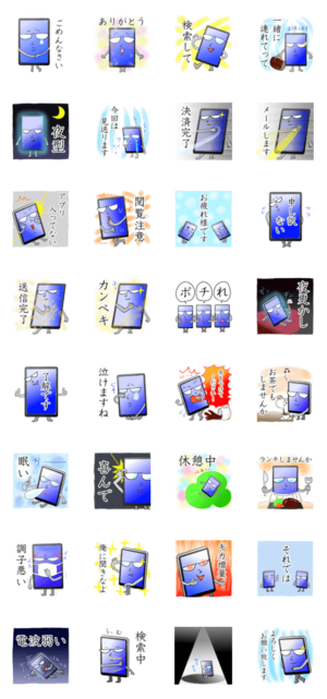 電子機器シリーズ、タブレットさん第2弾です。 IT系の方、パソコン、デバイス好きの方におすすめです。 日常にも、職場オフィスの仲間内でも使いやすいスタンプです。