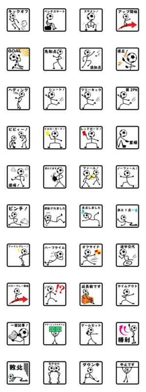サッカー、フットサルの速報ができる棒人間スタンプ。
