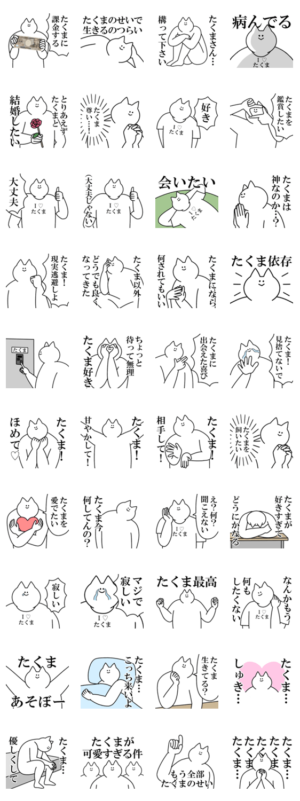 たくまくんに送る名前スタンプ。愛情強め。好きな人彼氏彼女推しに使える!メンヘラ、ヲタク、ヤンデレ、ネタ系、アイドル好きな方へ。タクマ/oroninet