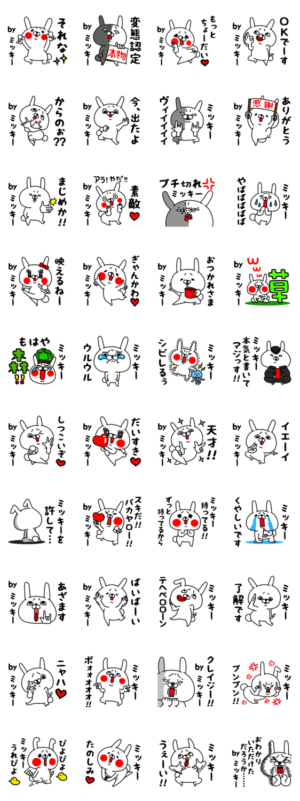 おわかりいただけただろうか。うぇーいうさぎの全力スタンプ第2弾。全力でうざい!!全力でおちょくる「ミッキー」専用名前スタンプです。かわいいうさぎで使いやすい。cosotto より発売