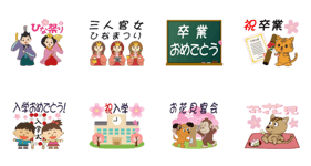 春の大きな行事である ひな祭りと、卒業・入学おめでとうと、お花見のスタンプです。