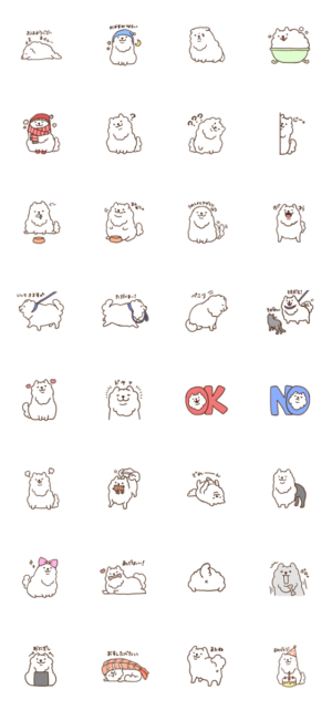 ふわふわもこもこのサモエド犬、ぴーのスタンプです。あんず大福 より発売