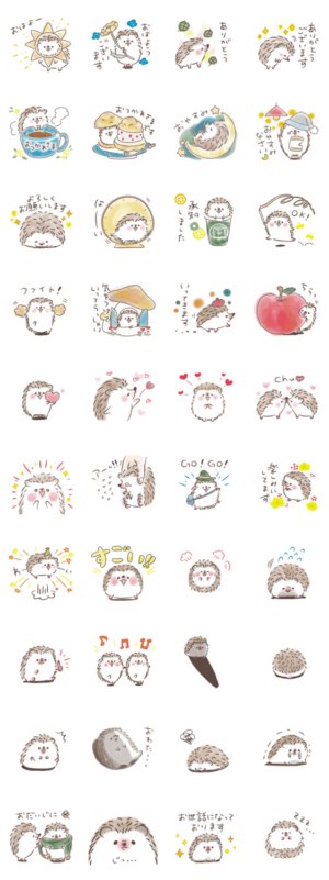 とにかくハリネズミが可愛いです。特に、落ち込んでいる姿のスタンプが全身で悲しみを表現していてとてもかわいいです。ショックなことがあった際などに使用してます。