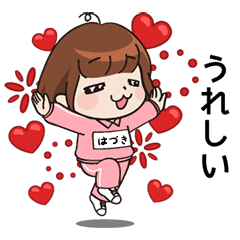 ピンクジャージのはづきの動く名前スタンプ。はづき,葉月,菜月,彗月,羽月,晴月,巴月,葉月姫,ハヅキなどはづきちゃんが使えるスタンプだよ
