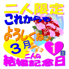 【3月の期間限定】結婚記念日お祝いスタンプver.1です。二人だけの限定スペシャルバージョンでパートナーに喜ばれますよ。/wedding/毎年使える/結婚記念日/大切な人/お得