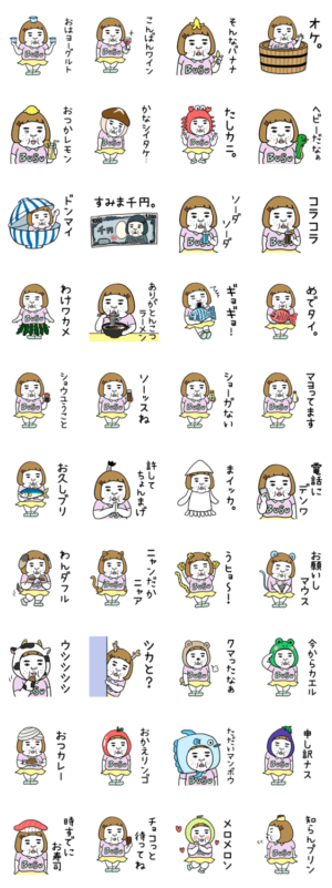 憎めないブスのダジャレver.です。家族や友達、彼氏彼女、主婦やママにも使える楽しいだじゃれ!。駄洒落好きやコスプレ好きにも♪ブサイクだけど愛嬌がある死語スタンプ!