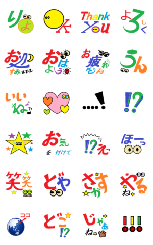 カラフルな可愛い絵文字のスタンプです。 日常使いに最適。いろいろな場面で相手を楽しませてね。