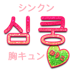 おりこ(オリコ)さん専用、キラキラした可愛いハングル(韓国語)スタンプ。略字多いです。日本語訳、発音カタカナありバージョン。