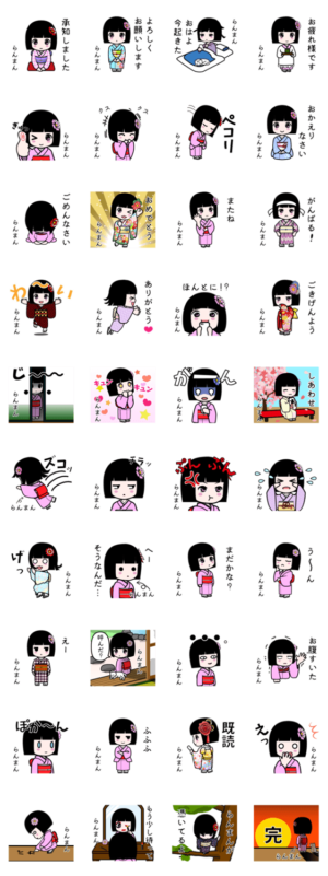 『らんまん』用のよく使う言葉を詰め合わせた座敷童子のスタンプです。和服 着物 振袖かがりひな より発売