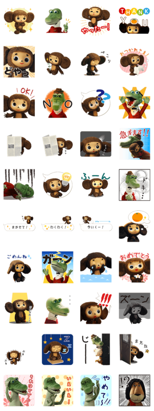 待望のパペットVer.スタンプ!映画から飛び出したチェブラーシカやゲーナが時にかわいく、時にシュールに?!気持ちを伝えます!