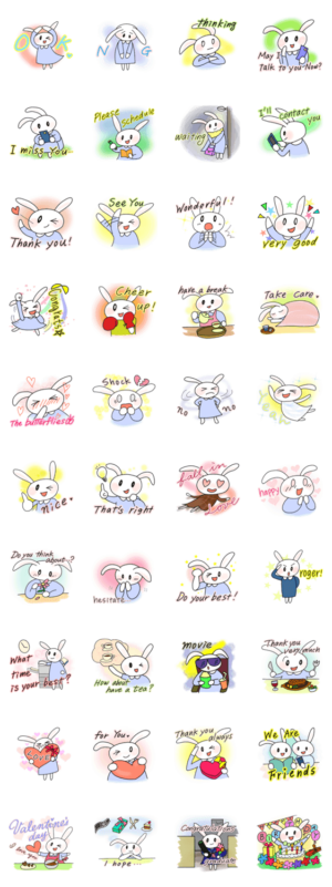 英語版!うさぎの「うー」2。恋する春 スタンプ画像一覧