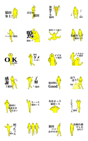 「猿田」の激しく動く黄色い鳥 スタンプ情報