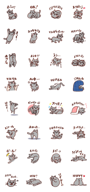 グレー系ネコちゃんの気持ちと挨拶! スタンプ情報