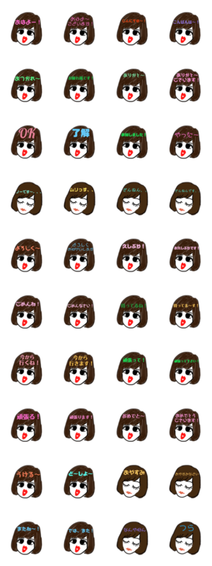 セミロングガールの挨拶スタンプのダウンロードはこちら↓