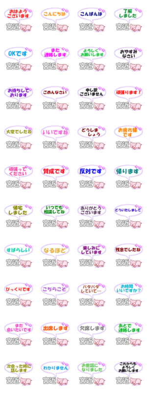 宮近「みやちか」さん専用。おはようございます、了解、出席、欠席、賛成、反対など大人の丁寧な日常会話、連絡用にどうぞ