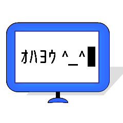 パソコンのモニター画面にタイプされたようにメッセージが表示されます。 挨拶編です。