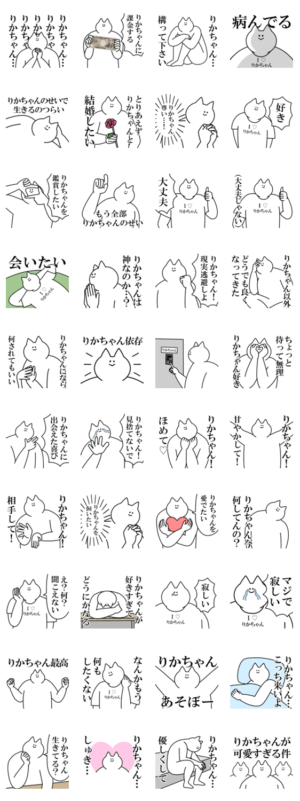 りかちゃんに送る名前スタンプ。愛情強め。好きな人彼氏彼女推しに使える!メンヘラ、ヲタク、ヤンデレ、ネタ系、アイドル好きな方へ。リカ りかこ 梨花 理香/oroninet