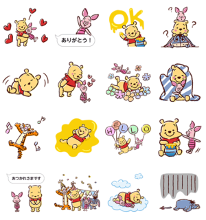 くまのプーさんがポップアップスタンプで初登場!ふんわりクレヨンタッチで、さらにほんわか、ほのぼの♪プーさんと仲間たちが画面いっぱいにゆる~く広がって癒されます!