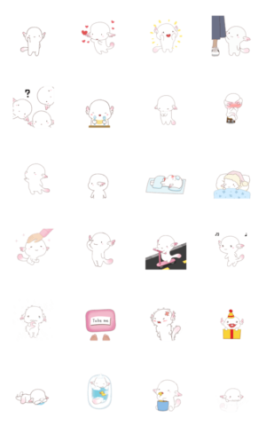この<ウーパールーパー>キャラクターの名前は<ラビ>です。いつも笑う<ラビ>は赤ちゃんのような笑顔で皆さんに幸せを与えるでしょう。(no text version)