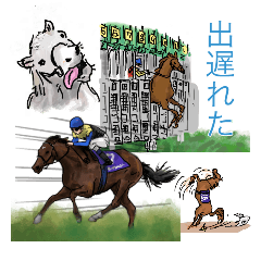競馬関係のスタンプです。馬や競馬がお好きな方だけでなく全く知らない方にもおススメです。 (馬、騎手、レース、競馬)