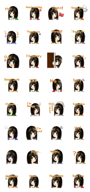 可愛い女の子のイラストスタンプです。英語の挨拶や日常会話など。いろんなシーンに使えます。
