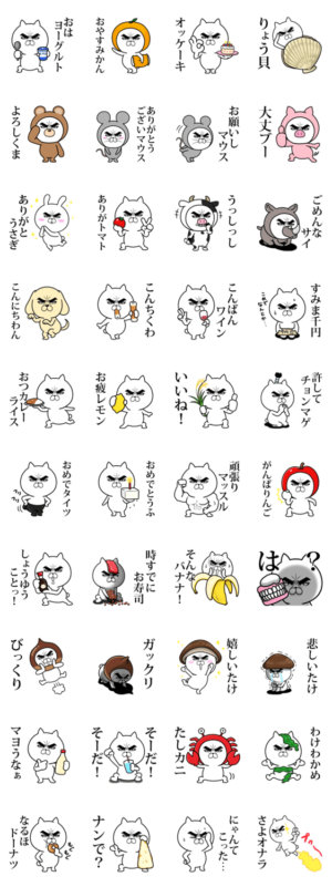 目ヂカラにゃんこのダジャレスタンプです。使いやすい駄洒落を集めました。