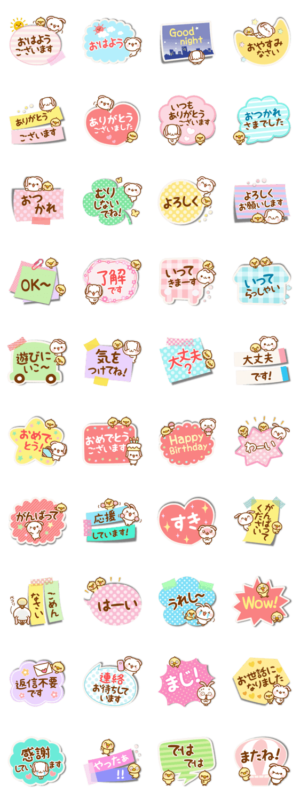 ペタッと可愛く使える付箋やシールのスタンプです♪ 「たれ耳うさぎ」とその仲間たちが楽しくメッセージを届けます♫