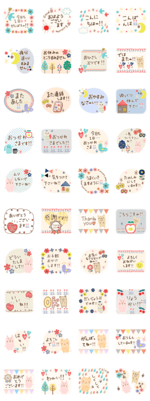 温かいタッチと言葉で癒されるスタンプです。いろいろな挨拶ができるのが良いですね。