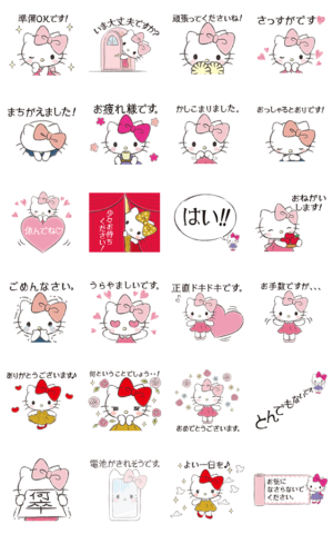 レディなハローキティが、上品で丁寧な言葉使いでおもてなし♡トークに使えば、どんなシチュエーションでも、大人でステキな対応がばっちり出来ちゃいます!