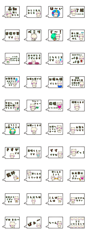 シンプル吹き出し/ スタンプ返信/敬語/丁寧語/日常会話/挨拶/男性も使える/承認致しました/了解/いつもありがとうございます/お気を付けて/お大事にして下さい/くまクマmamama-chin より発売