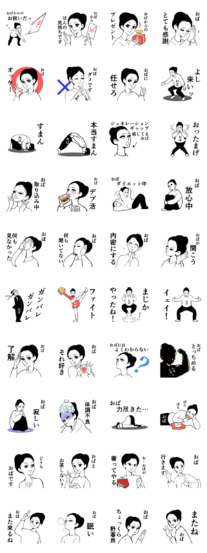 すべてのおばさん(叔母)のためのスタンプ。甥姪との会話などにお使いください。なんとなく絵柄が昭和。たろ より発売
